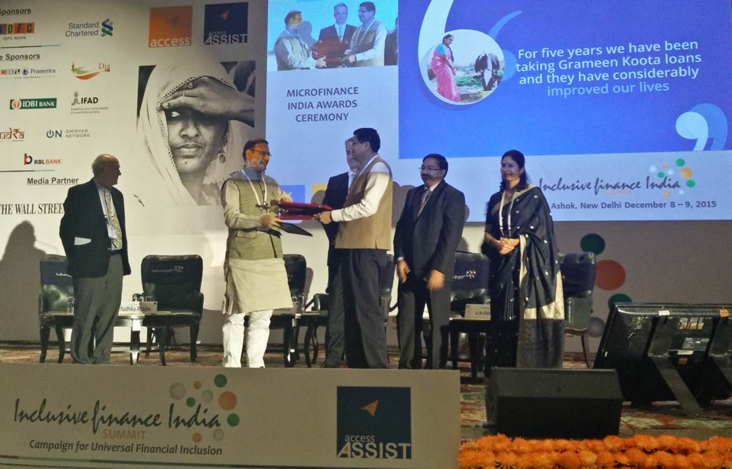 Microfinance India Awards: Instituted in 2009 and conferred annually, Microfinance India Awards seek to recognize and celebrate  institutions and individuals for their exemplary contribution in the organized growth of the microfinance sector. Shri Jayant Sinha, Hon’ble Minister of State for Finance, Govt. of India presented the awards to all the winners at the ceremony held at Hotel Ashok, New Delhi on December 8, 2015.